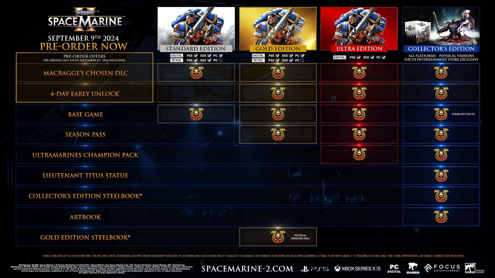 Vorbestellungen sind ab sofort über PlayStation 5, Xbox Series, Steam, Epic Games Store und teilnehmende Händler möglich. Neben der Collector’s Edition, die exklusiv im Focus Store erhältlich ist, könnt ihr jetzt auch die Standard, Gold und Ultra Editionen vorbestellen.
