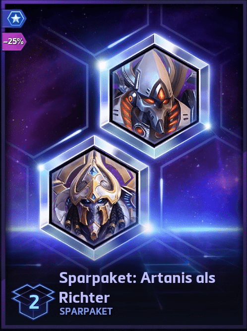 Zum Release eines Helden gibt es immer ein Sparpaket, inklusive des Helden und dem für den Helden verfügbaren Skin. Das Angebot gibt es natürlich auch wieder bei Artanis. Ihr könnt das Sparpaket „Artanis als Richter“ für 12,99 € erwerben.