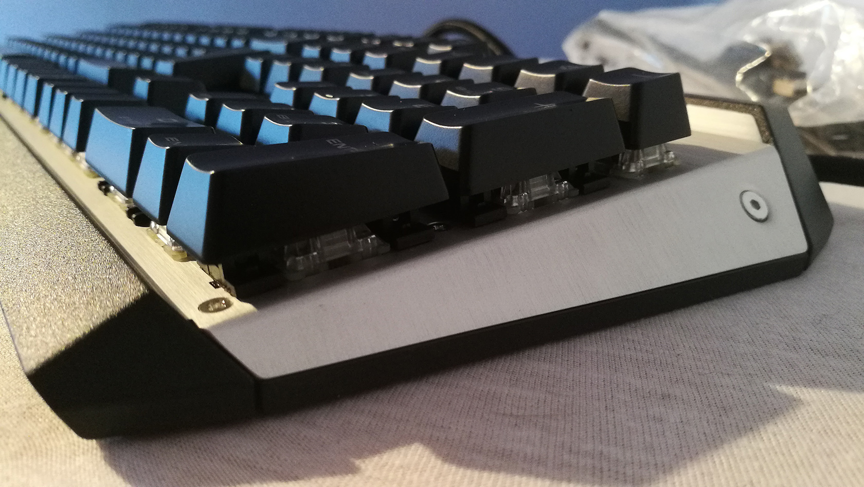 Bei der Attack X3 war die Verarbeitung ja schon recht gut, allerdings hat man beim genaueren Hinschauen gemerkt, dass die Aluminiumplatte scheinbar nicht exakt dort sitzt, wo sie eigentlich sitzen sollte, so hatte man leicht unschöne Spaltmaße und scharfe Kanten. Doch anders verhält sich dieser Zustand bei der X3 RGB, denn hier hat man den Fehler vom Vorgängermodell komplett überarbeitet.