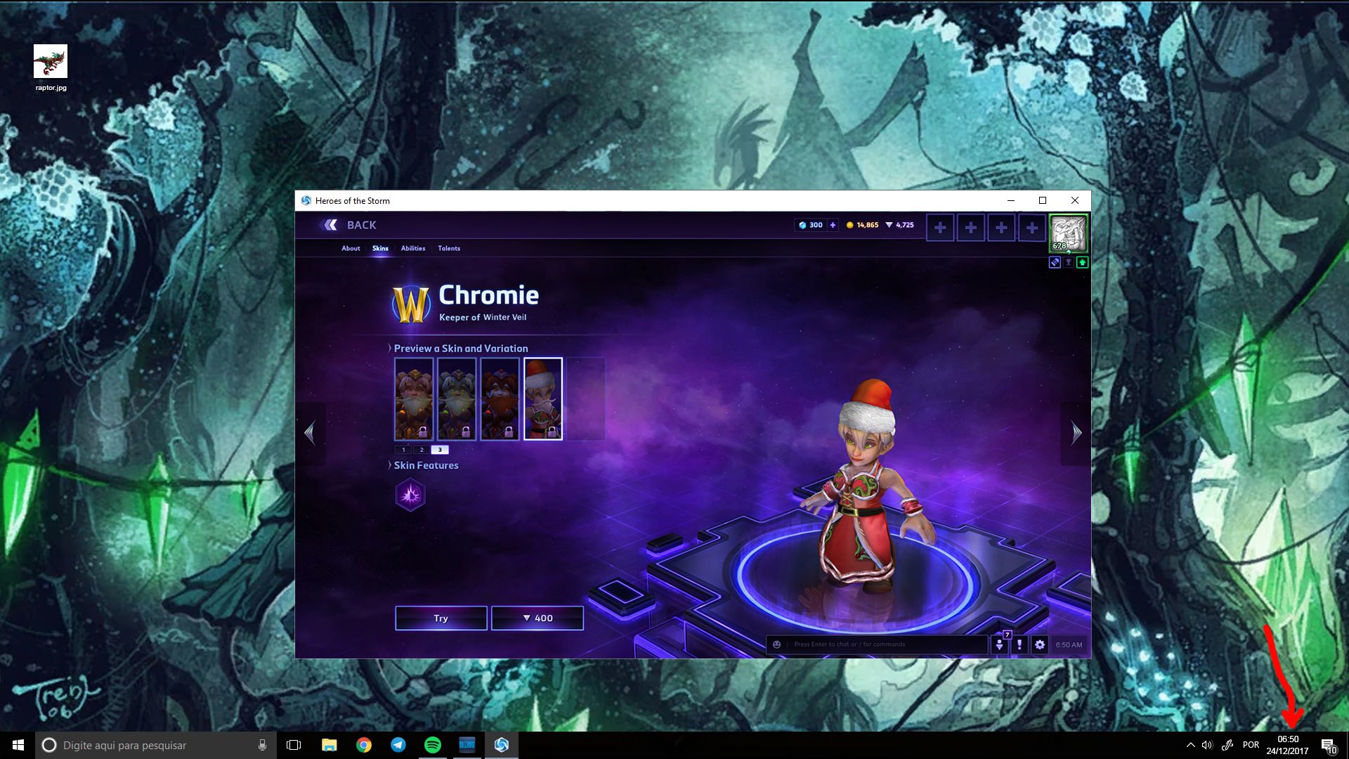 NotBelial hat während einigen Tests am heimischen PC das Datum umgestellt, um so auf dem 24.12.2017 zu landen. Die Tests waren beendet, Heroes wurde gestartet, doch das Datum blieb versehentlich auf genau diesem Weihnachtsdatum stehen. Folgender Skin erschien plötzlich im Shop und verschwand ebenso schnell wieder, als das Datum erneut korrekt eingestellt wurde:
