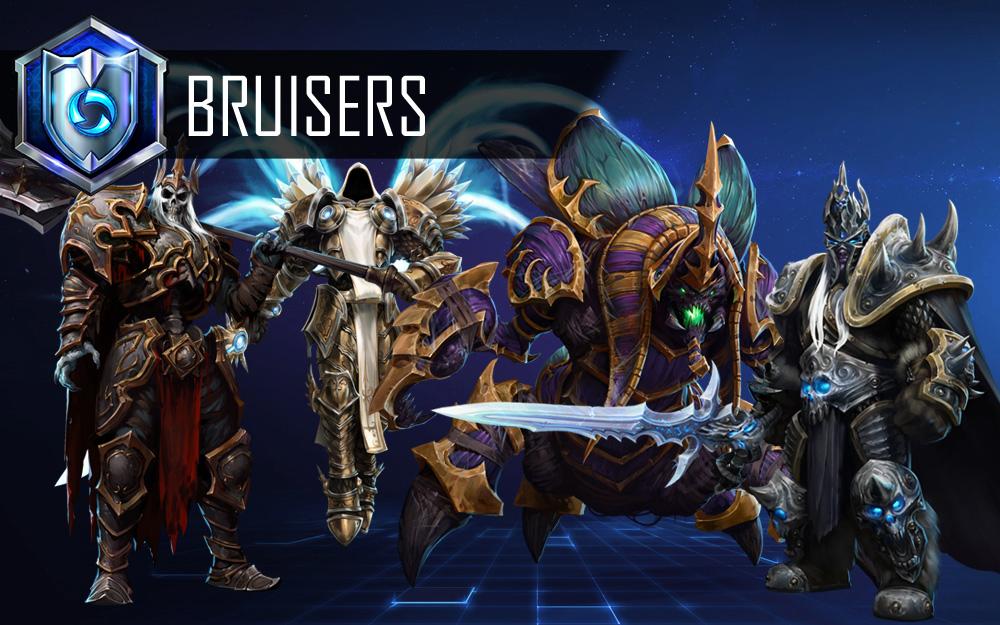 Bruiser können all die lustigen Dinge tun, die ein Krieger außerhalb der langweiligen Aufgaben, die ein Tank zu erledigen hat, tun kann. Diese Rolle ist eine Art von Off-Tank, welcher fähig ist eine tankende Verantwortlichkeit auf sich zu nehmen wenn es nötig ist, kombiniert mit bedeutendem Schaden und Nutzen für das Team. Jeder dieser Helden kann aber auch die Rolle eines Solo-Tanks annehmen, wenn man die richtigen Talente dafür wählt, nur mit weniger Leben, dafür aber höherem Schadenspotential.