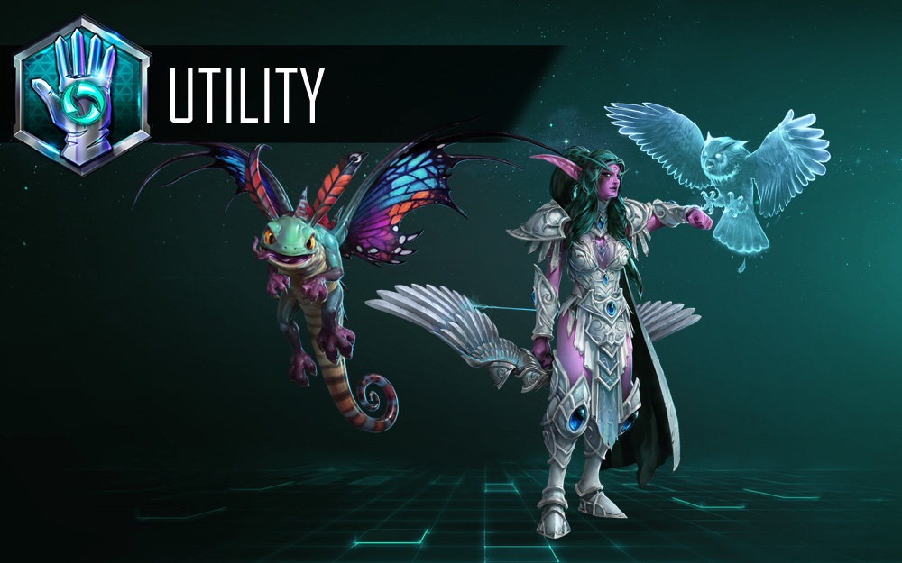 Tyrande hingegen ist ein sehr guter Solo-Heiler, wenn man sie korrekt aufbaut. Ihre richtige Stärke liegt allerdings in alternativen Builds. Sie gibt sehr viel Vision durch ihre Eule, die sie über die ganze Karte schießen kann. Ihr Stun ist einer der Besten im Spiel. Sie kann mit einem soliden Auto-Attack Schaden gespielt werden und kann gleichzeitig das Team durch Talente wie „MULE“ unterstützen.