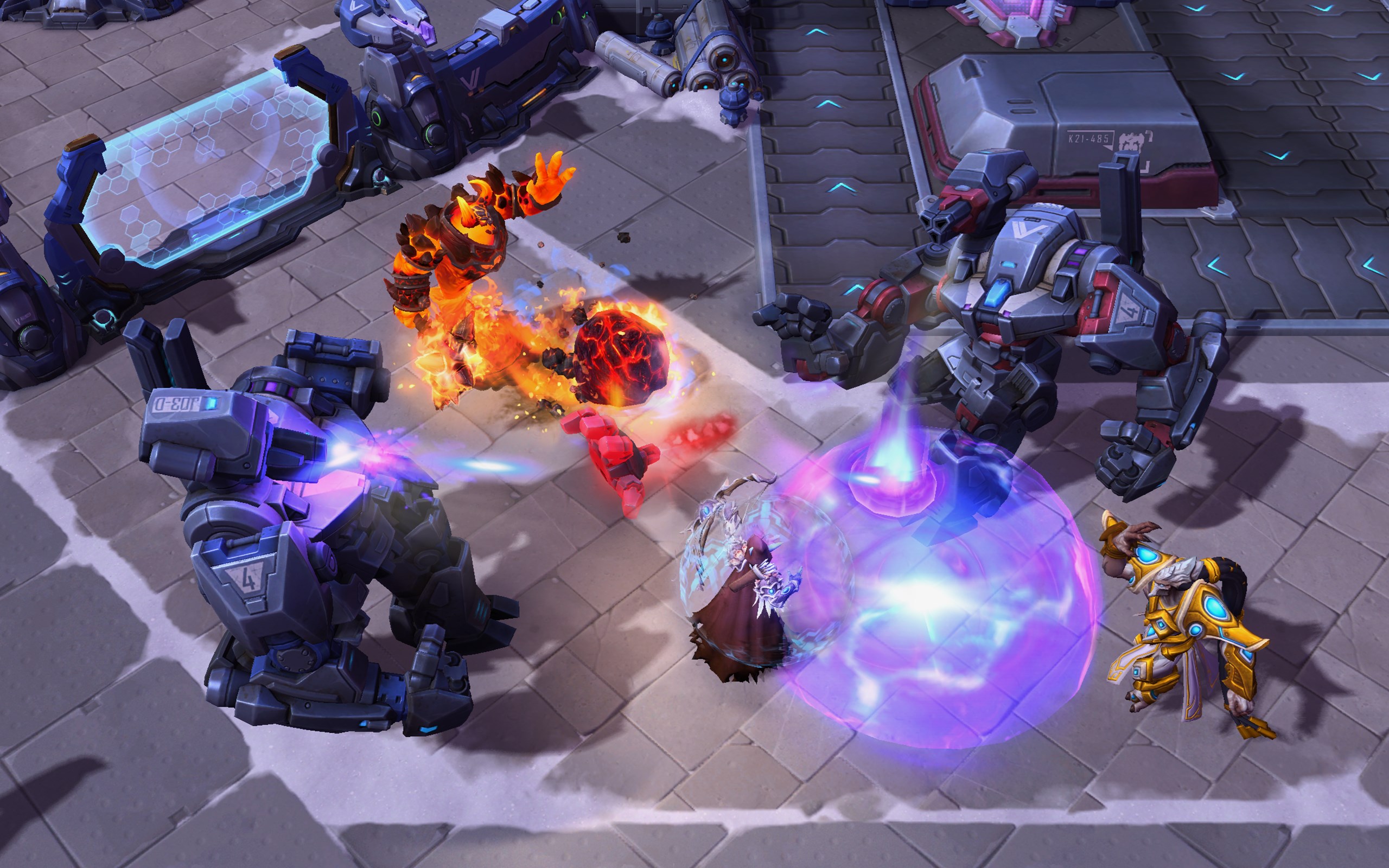 Dieser Brawl wird eine S-förmige Karte mit einer Lane sein welche im Industriellen Distrikt angesiedelt sein wird. Jedes Team startet mit einem Mech der immer wieder erscheint, während die beiden Teams um den Sieg kämpfen.