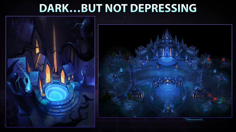 Die Vorstellung der Karte wird gestartet mit der Frage, ob es unbedingt einen Nexus geben muss, den man angreifen kann, um zu gewinnen. Diese Frage beantwortet Blizzard mit einem eindeutigen „nein“. Doch nachdem die Pläne einer Map, ohne Nexus nicht ganz so den Vorstellungen von Blizzard entsprach und wieder verworfen wurde, haben sie ein neues Konzept entwickelt, welche die Karte trotzdem um einiges anders macht, als die Vorherigen. Der Totengräber und der Rabenfürst bekämpfen sich, um das Territorium der Stadt unter seine Herrschaft zu bringen. Jede Zitadelle besitzt eine Barriere, welche von Helden nicht zerstört werden kann. Darum sind die Teams dazu aufgefordert die Altare, welche in der Stadt erscheinen, zu aktivieren, indem sie um sie kämpfen. Ist der Altar erst einmal von einem Team eingenommen, so feuert der Glockenturm des Teams auf die gegnerische Zitadelle. Insgesamt beinhaltet die Stadt 6 Glockentürme. Wird dieser Glockenturm zerstört, wechselt er die Seite und greift die einst verbündete Zitadelle an.