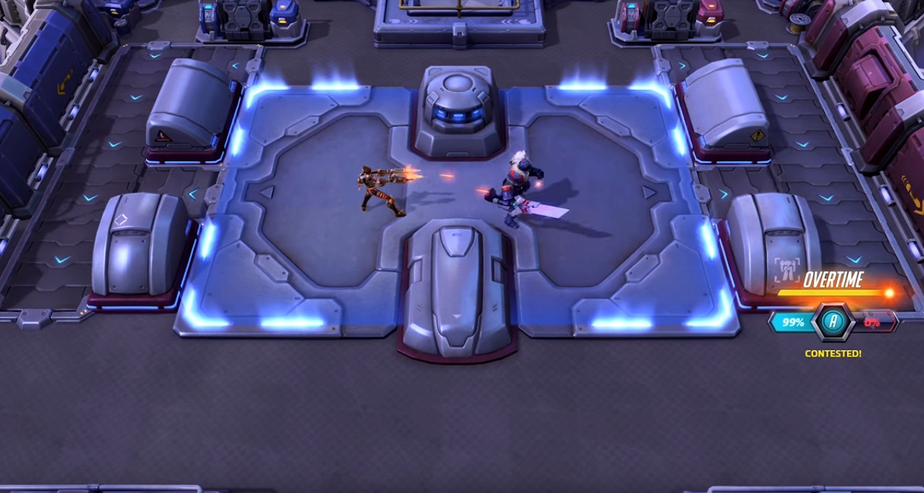 Erscheint ein Gegner bei 99% eurer Ladung auf der Plattform, beginnt wie bei Overwatch die Overtime. Dies bedeutet, dass die Gegner einige Sekunden Zeit bekommen, euch den letzten Prozentpunkt streitig zu machen. Die Overtime wird jedes Mal zurückgesetzt, wenn ein Gegner die Plattform betritt.