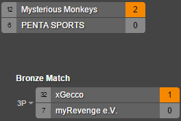 - Platz 3: xGecco gewinnen gegen myRevenge e.V. und schlagen sich als einziges Randomteam bis zum Halbfinale durch und landen sogar auf dem Treppchen! Respekt an der Stelle!