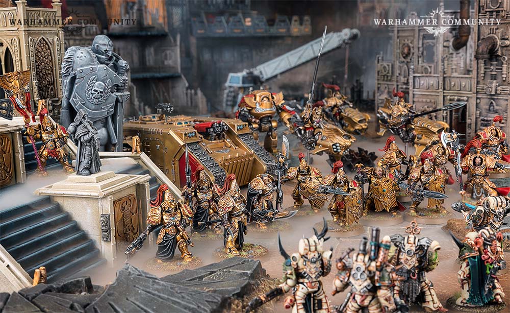 Groß, golden und unglaublich alt, die Adeptus Custodes sind eine Streitmacht, mit der man rechnen muss. Während sie sich in der Galaxis herumtreiben, den Willen des Imperators verbreiten und neue Namen bekommen, geraten sie unweigerlich in Konflikte, und hier können sie ihre kriegerischen Fähigkeiten entfalten.